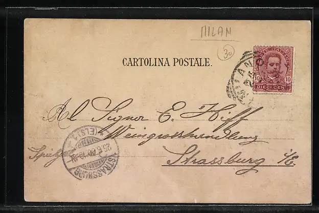 gelaufen 1900, Einrisse re. u. unten mittig, guter Zustand