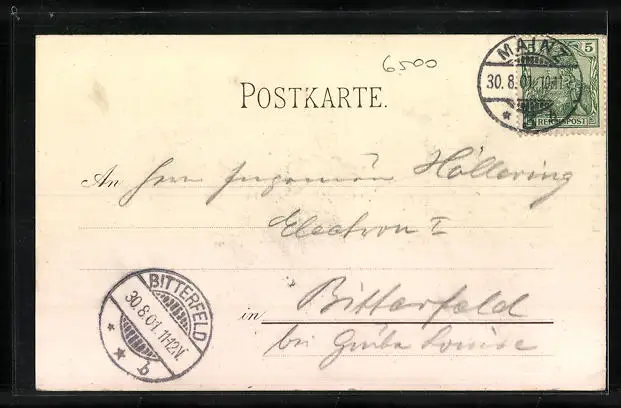 gelaufen 1901, Eckknick unten links, guter Zustand