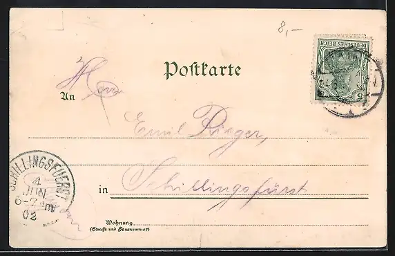 gelaufen 1902, minimaler Einriss unten mittig, guter Zustand
