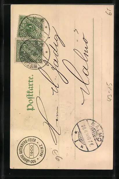 Lithographie Mainz, Johannes Gensfleisch zu Gutenberg zur 500. Gutenbergfeier 1900