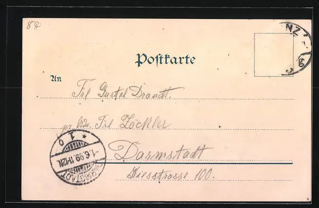 gelaufen 1899, Briefmarke entfernt, guter Zustand