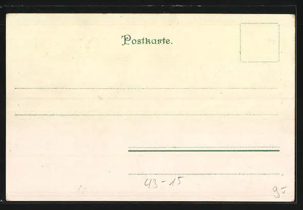 Personenbezogene Daten auf der Rückseite der Karte wurden durch blauen Textmarker unkenntlich gemacht. Die blauen Stellen sind auf die Vorderseite durchgeweicht und wirken sich negativ auf das Postkartenfoto aus