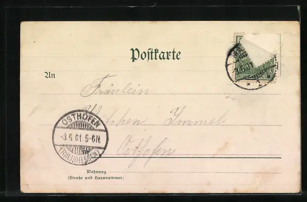 gelaufen 1901, kleiner Einriss re. oben, guter Zustand
