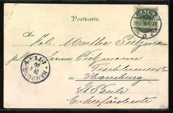 gelaufen 1900, Eckknick oben rechts, guter Zustand