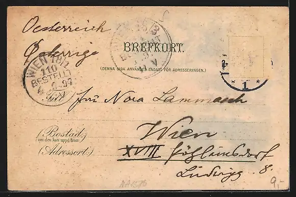gelaufen 1897, Briefmarke entfernt, guter Zustand