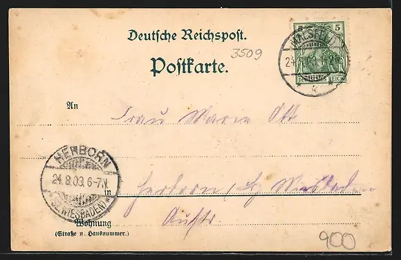 gelaufen 1903, Eckknick li. oben, guter Zustand