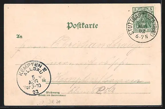 gelaufen 1902, Stecknadelloch oben Mitte u. re., Stempelspur, guter Zustand