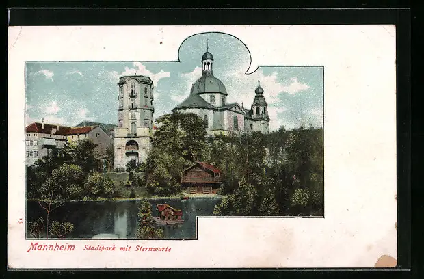 Lithographie Mannheim, Stadtpark mit Sternwarte