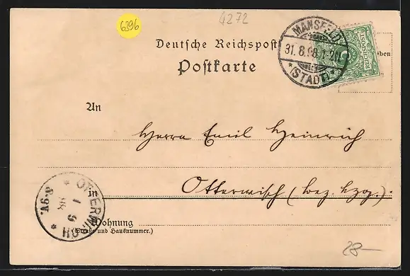 gelaufen 1898, rückseitig Klebe- und Papierreste, Eckknick li. unten, guter Zustand