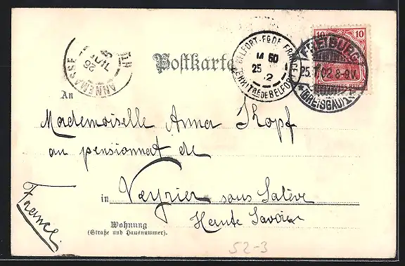gelaufen 1902, Eckknick re. unten, Stempelspur, guter Zustand