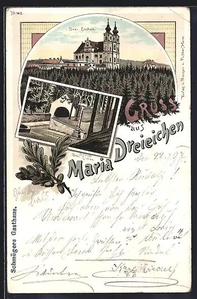 Lithographie Maria Dreieichen, Drei Eichen und Bründl Drei Eichen
