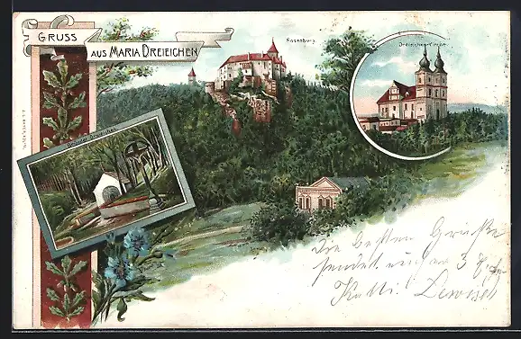 Lithographie Maria Dreieichen, Rosenburg, Bründel Dreieichen, Dreieichen-Kirche