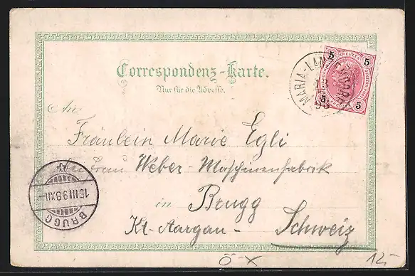 gelaufen 1898, Ecken bestoßen, guter Zustand