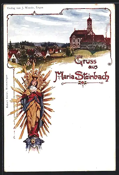 Lithographie Maria Steinbach, Teilansicht mit Kirche
