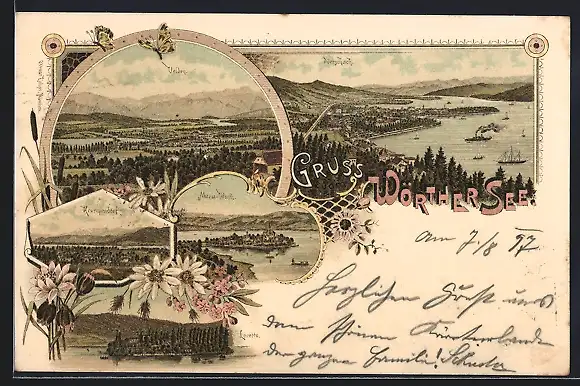 Lithographie Maria-Wörth /Wörther See, Teilansicht, Krumpendorf, Loretto