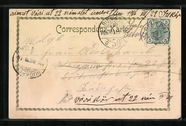Personenbezogene Daten auf der Rückseite der Karte wurden durch blauen Textmarker unkenntlich gemacht. Die blauen Stellen sind auf die Vorderseite durchgeweicht und wirken sich negativ auf das Postkartenfoto aus