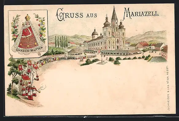 Lithographie Mariazell, Kirche, Gnadenmutter