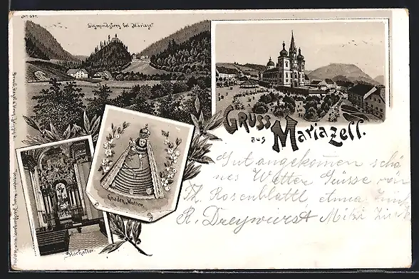 Lithographie Mariazell, Kirche, Hochaltar, Gnadenmutter