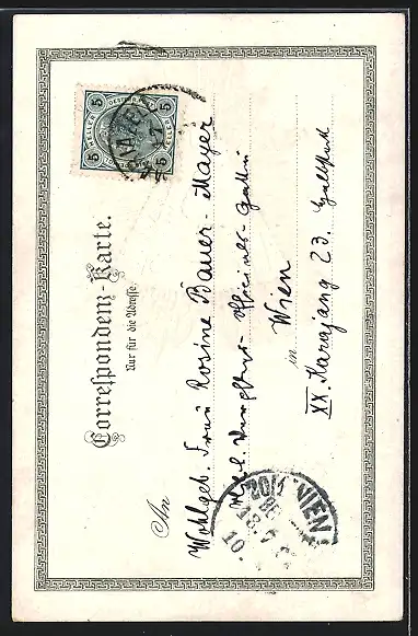 Personenbezogene Daten auf der Rückseite der Karte wurden durch blauen Textmarker unkenntlich gemacht. Die blauen Stellen sind auf die Vorderseite durchgeweicht und wirken sich negativ auf das Postkartenfoto aus