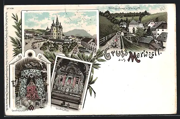 Lithographie Mariazell, Wallfahrtskirche, Gnadenaltar, Heiligenbrunn