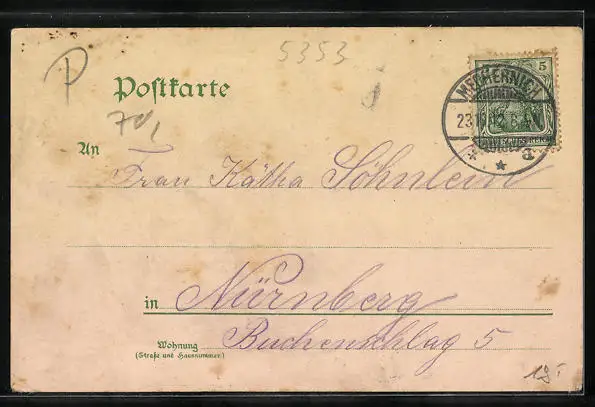 gelaufen 1912, Eckknick oben links, guter Zustand