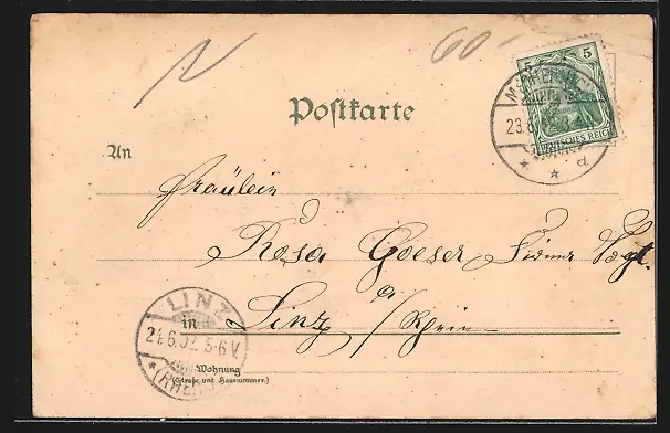 gelaufen 1902, Eckknick oben re., guter Zustand