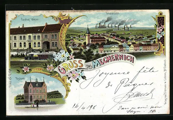 Lithographie Mechernich, Totalansicht mit Gasthof Weber