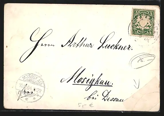 gelaufen 1904, Einriss li. unten, restaurierter Einriss li. unten, guter Zustand