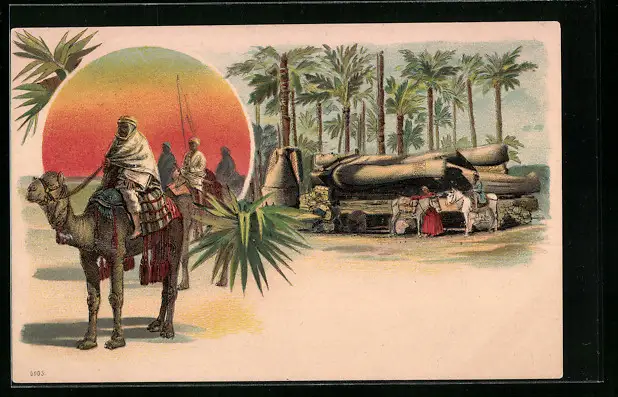 Lithographie Memphis, Araber auf einem Kamel, Ramses