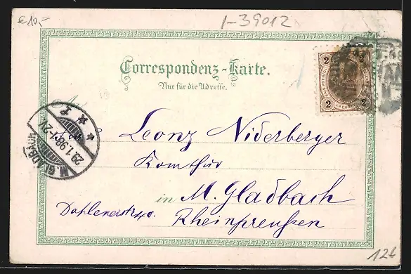 gelaufen 1898, Eckknick li. oben, guter Zustand