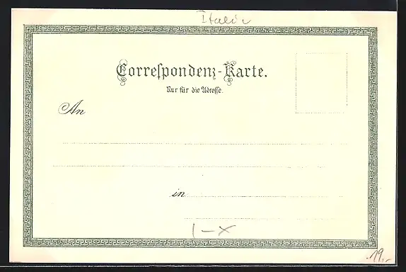 Personenbezogene Daten auf der Rückseite der Karte wurden durch blauen Textmarker unkenntlich gemacht. Die blauen Stellen sind auf die Vorderseite durchgeweicht und wirken sich negativ auf das Postkartenfoto aus