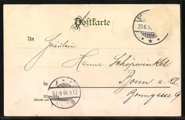 gelaufen 1899, Briefmarke entfernt, Stempelspur, guter Zustand
