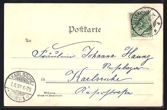 gelaufen 1897, Eckknick li. unten, guter Zustand