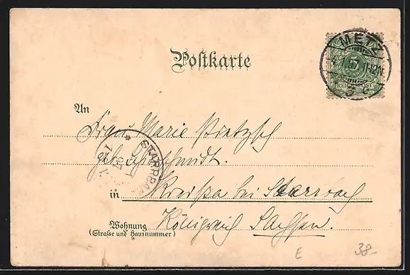 gelaufen 1897, Einriss re. unten, guter Zustand