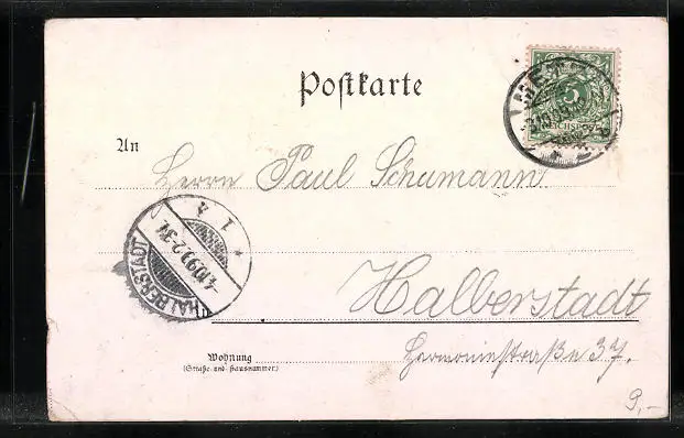 gelaufen 1909, Eckknick unten re., guter Zustand