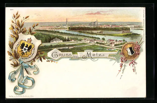 Lithographie Metz, Panoramablick auf die Stadt