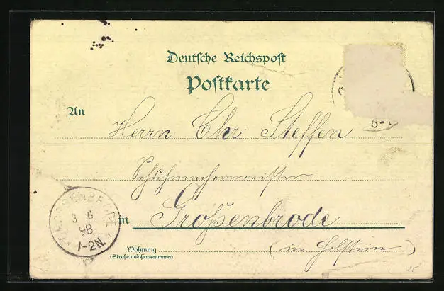 gelaufen 1898, Briefmarke entfernt, rückseitig Oberflächenschaden, Bugspur und kleiner Einriss li. unten, guter Zustand