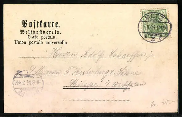 gelaufen 1904, Eckknick unten re., guter Zustand