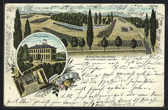 Lithographie Metz, Schloss Freskaty, Grosser Exerzier-Platz
