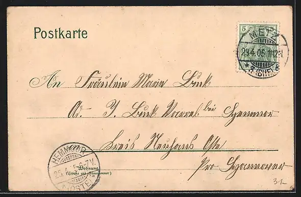gelaufen 1905, Eckknick re. oben, guter Zustand