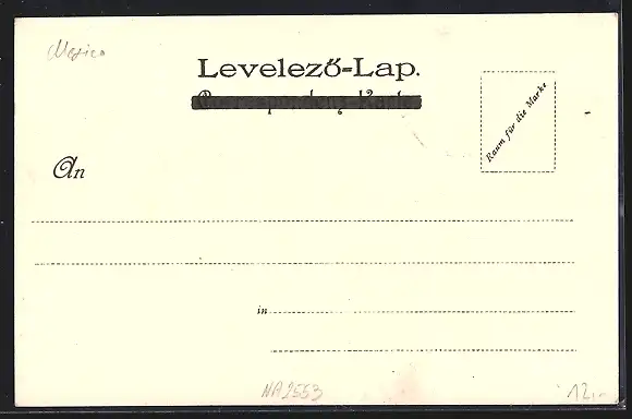 Personenbezogene Daten auf der Rückseite der Karte wurden durch blauen Textmarker unkenntlich gemacht. Die blauen Stellen sind auf die Vorderseite durchgeweicht und wirken sich negativ auf das Postkartenfoto aus
