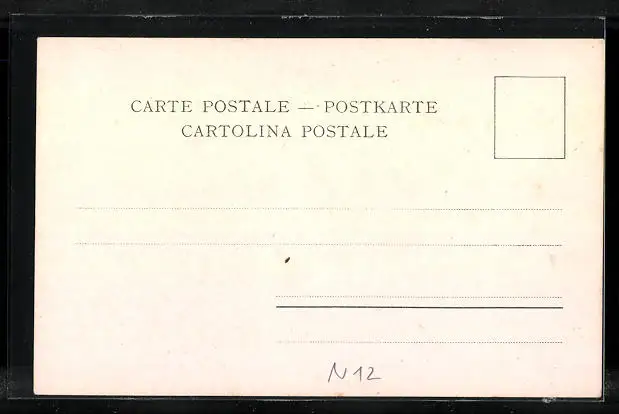 Personenbezogene Daten auf der Rückseite der Karte wurden durch blauen Textmarker unkenntlich gemacht. Die blauen Stellen sind auf die Vorderseite durchgeweicht und wirken sich negativ auf das Postkartenfoto aus