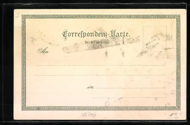 Personenbezogene Daten auf der Rückseite der Karte wurden durch blauen Textmarker unkenntlich gemacht. Die blauen Stellen sind auf die Vorderseite durchgeweicht und wirken sich negativ auf das Postkartenfoto aus