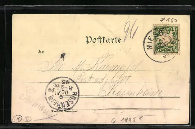 gelaufen 1898, minimaler Einriss li. mittig, Bugspuren li. unten, Eckknick re. oben, guter Zustand