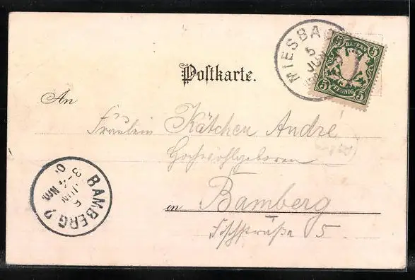 gelaufen 1900, Eckknicke re. oben, guter Zustand