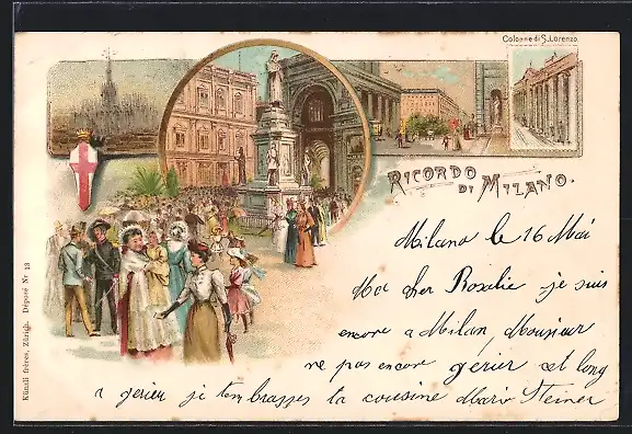 Lithographie Milano, Colonne di S. Lorenzo, il Duomo