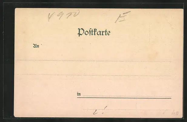 Personenbezogene Daten auf der Rückseite der Karte wurden durch blauen Textmarker unkenntlich gemacht. Die blauen Stellen sind auf die Vorderseite durchgeweicht und wirken sich negativ auf das Postkartenfoto aus