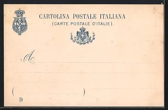 Personenbezogene Daten auf der Rückseite der Karte wurden durch blauen Textmarker unkenntlich gemacht. Die blauen Stellen sind auf die Vorderseite durchgeweicht und wirken sich negativ auf das Postkartenfoto aus