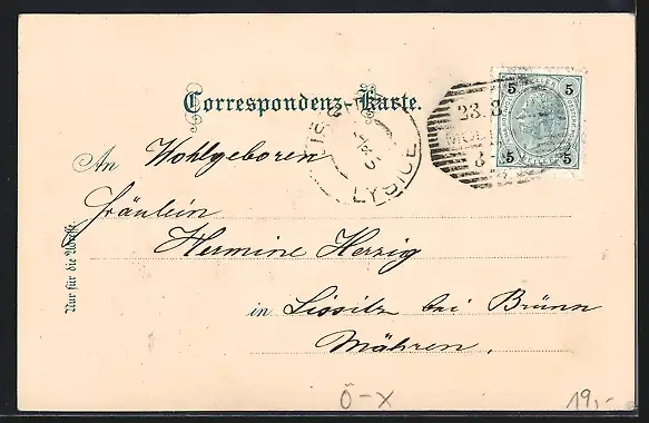 Personenbezogene Daten auf der Rückseite der Karte wurden durch blauen Textmarker unkenntlich gemacht. Die blauen Stellen sind auf die Vorderseite durchgeweicht und wirken sich negativ auf das Postkartenfoto aus
