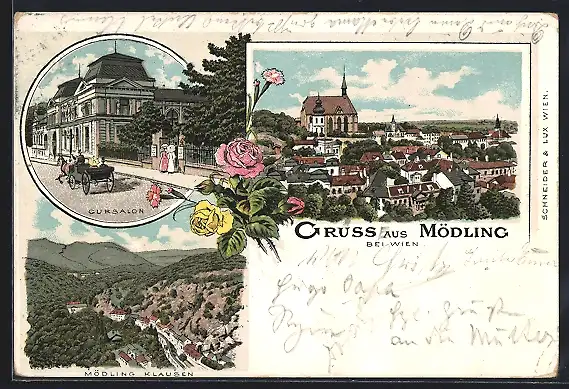 Lithographie Mödling bei Wien, Cursalon, Mödling Klausen